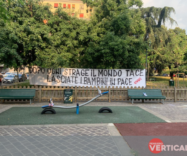 Iniziativa dell’Associazione Una Voce nel Silenzio questa mattina in un parco giochi milanese per gridare la propria indignazione nei confronti del colpevole silenzio del mondo (occidentale, in parti…